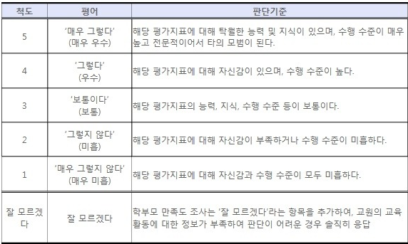 먼저 학생 만족도 조사는 '학생 인식 조사'로 바뀝니다. 기존의 평가 문항들은 교사의 수업 방식에 대한 만족도를 측정했지만, 이제는 교사의 교육을 통해 학생이 얼마나 성장했는지를 묻는 방식으로 전환됩니다. 예를 들어, 기존의 "선생님은 수업 시간에 활발하게 질의응답을 한다"는 문항에서 "선생님의 질문으로 수업에 호기심이 커졌다"는 식의 문항으로 변화하게 되는 것입니다. 이를 통해 교사의 교육적 영향력을 더욱 직접적으로 평가할 수 있게 됩니다.