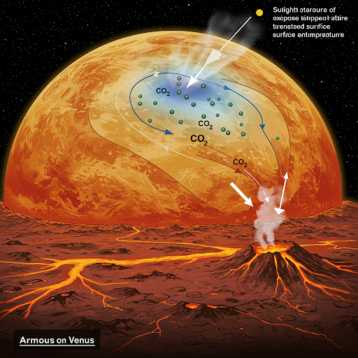 - 금성은 태양에 가까워 태양 복사 에너지를 많이 받습니다. 이는 온실 효과를 더욱 강화시키는 요인으로 작용했습니다.