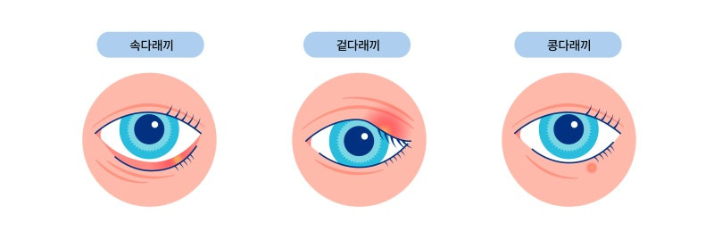 눈다래끼는 발생하는 위치와 세균 감염 여부에 따라 겉다래끼, 속다래끼, 콩다래끼로 나뉩니다. 각각의 유형마다 증상이 조금씩 다르기 때문에 그 차이를 알아두는 것이 좋아요.