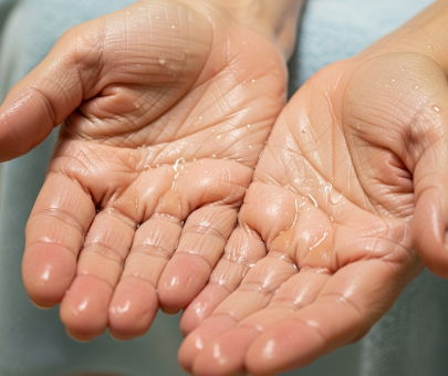 - 손이 물에 닿으면 땀샘이 열리고,