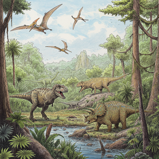 - 공룡의 등장: 약 2억 3천만 년 전, 공룡이 지구를 지배하기 시작했습니다. 하루 타임라인으로는 거의 자정에 가까운 오후 11시 40분, 거대한 생명체들이 등장해 한창 번성했던 시기입니다.