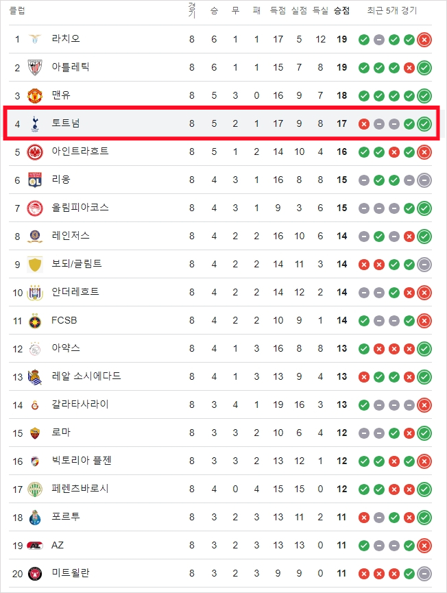 - 토트넘 승점: 17점 (5승 2무 1패)