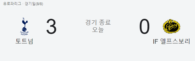 - 경기: 토트넘 홋스퍼 vs IF 엘프스보리