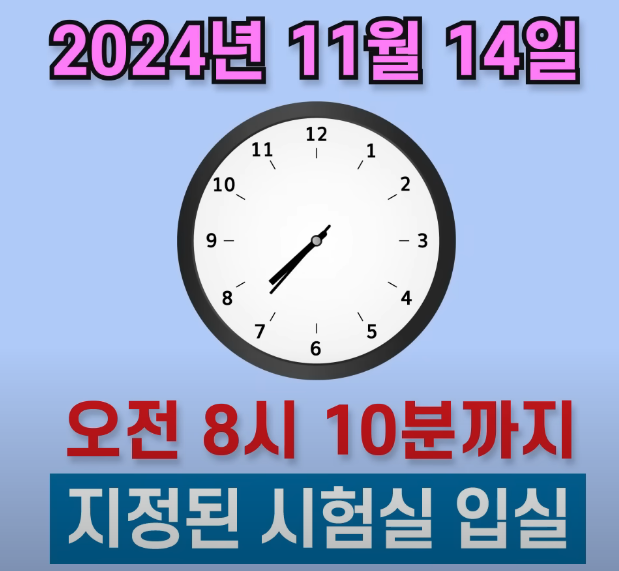 수험생 여러분, 시험 전날인 11월 13일에 진행되는 예비 소집에는 반드시 참석하셔야 해요. 이때 수험표를 수령하고 시험 유의 사항을 안내받게 되는데요, 수험표에 기재된 본인의 선택과목을 확인하고, 시험 당일 잘못된 시험장으로 가지 않도록 수험표에 적힌 시험장 위치도 사전에 꼭 확인해 두세요. 예비 소집에 빠지면 큰 혼란이 올 수 있으니 절대 잊지 말아야 합니다.