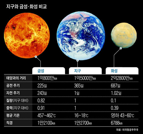 금성의 환경 및 특징, 지구와의 차이점 알아보기
